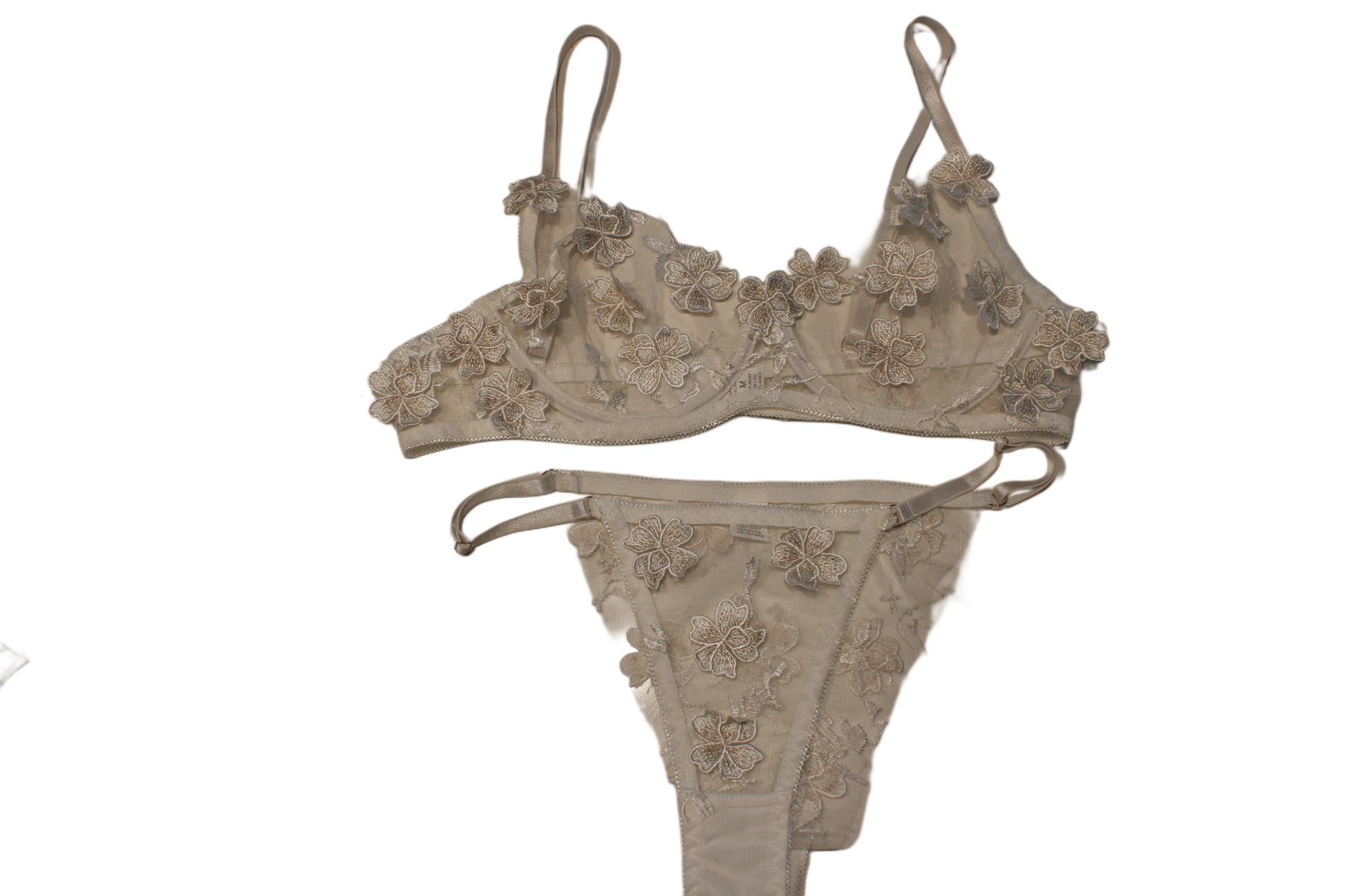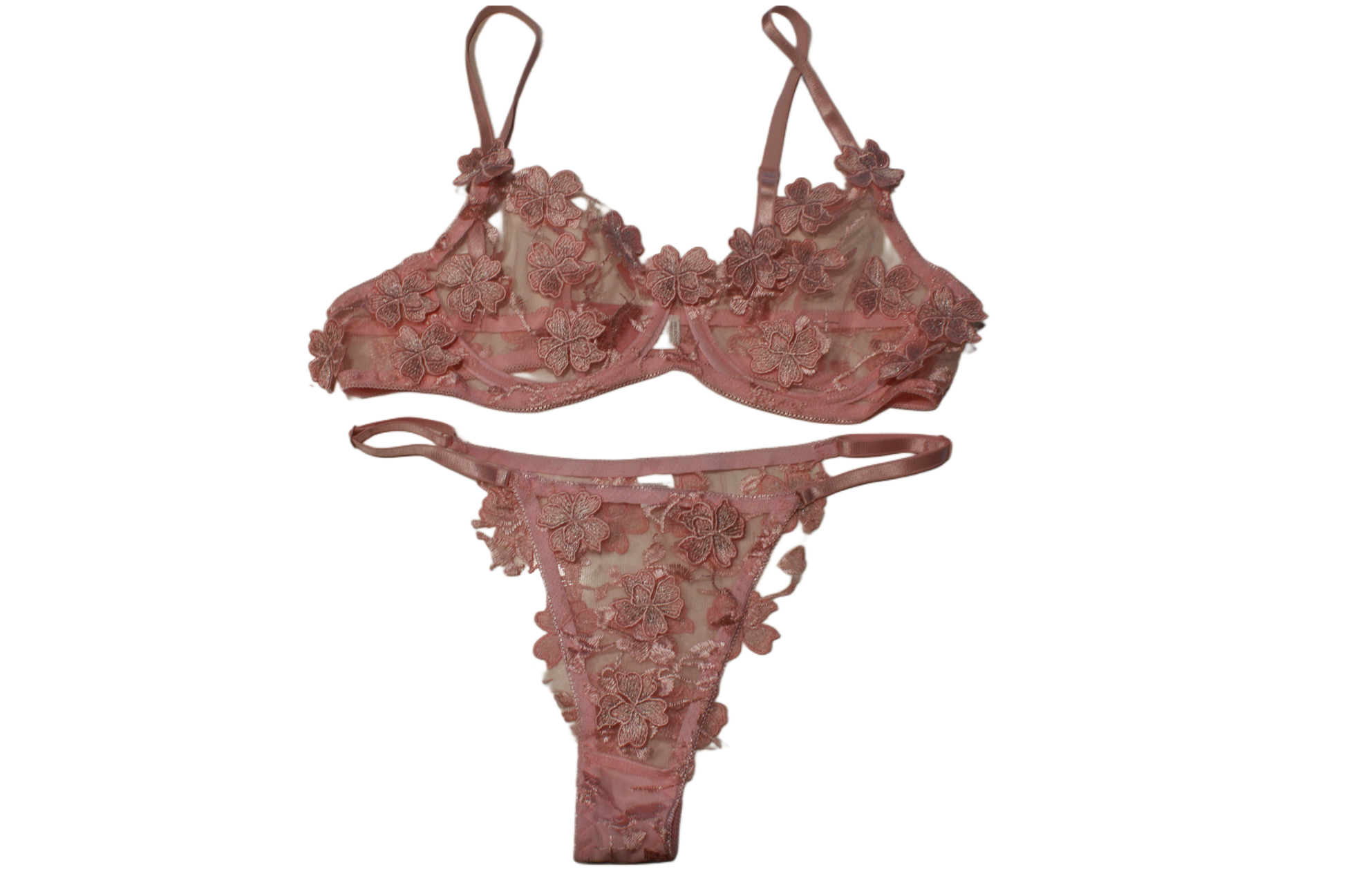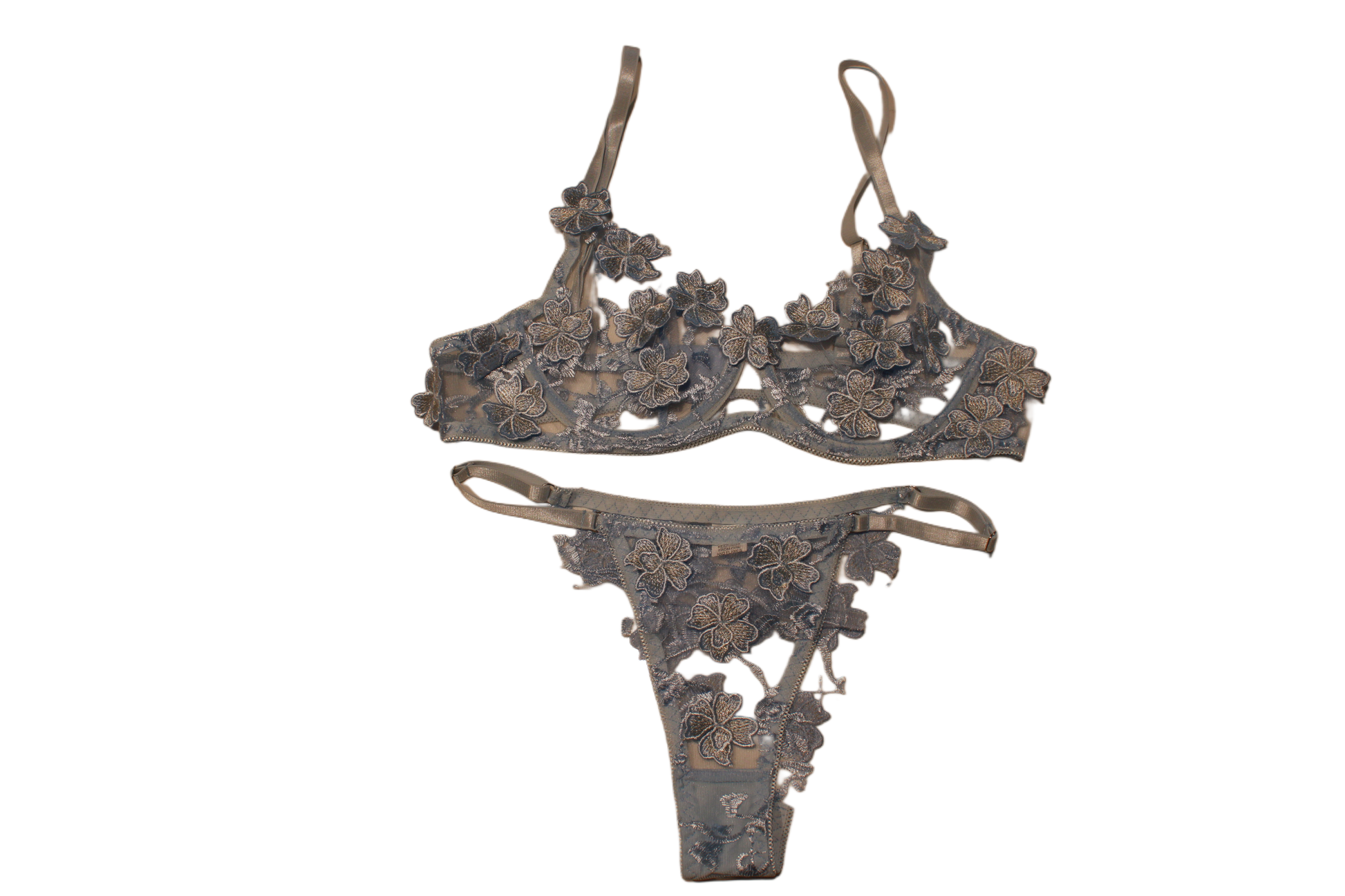 Unleash your daring side with Lust in Lace! This transparent lingerie set features delicate embroidered flowers for a bold, sensual look. Reveal and ignite your passion with this piece.